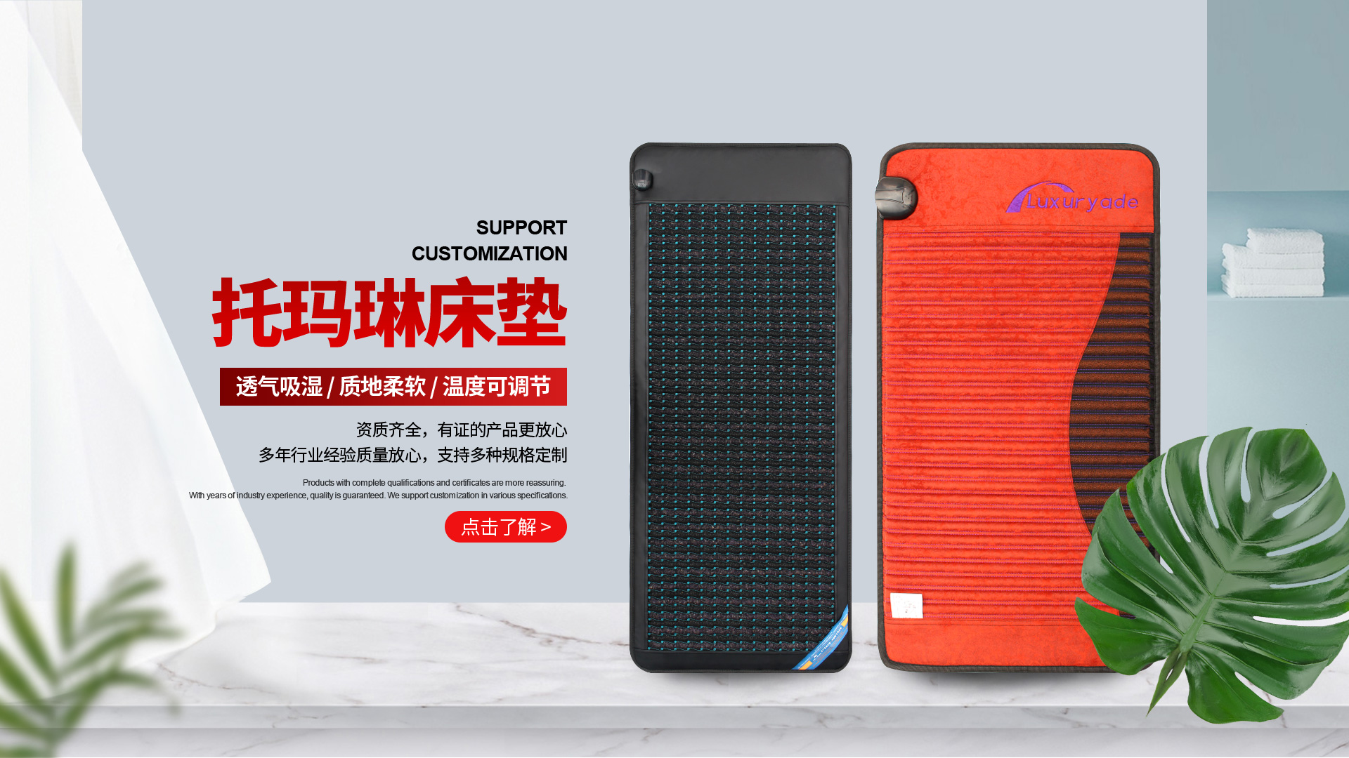 現(xiàn)主要產(chǎn)品有玉石床、溫?zé)嵊袷矇|、溫?zé)徭N石床墊、溫?zé)嶙鴫|、溫?zé)峥勘臣岸喾N玉石保健制品等